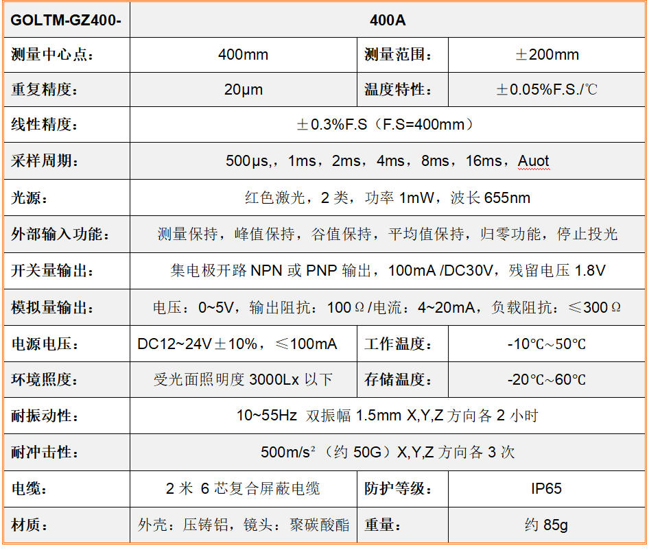 GOLTM-GZ400-400A型密实脉冲激光测距仪用于于高精准度、高带宽的测量正方体位移、长宽比、间距及间距差,传动装置接线简概,数字消失坚决间断或坚决间断,符合摹拟量设置及触点开关量设置。● 激光三ജ角形丈量道理,高(gao)(gao)(gao💙)精度、高(gao)(gao)(gao)速率、高(gao)(gao)(gao)活络度丈量细小位(wei)移